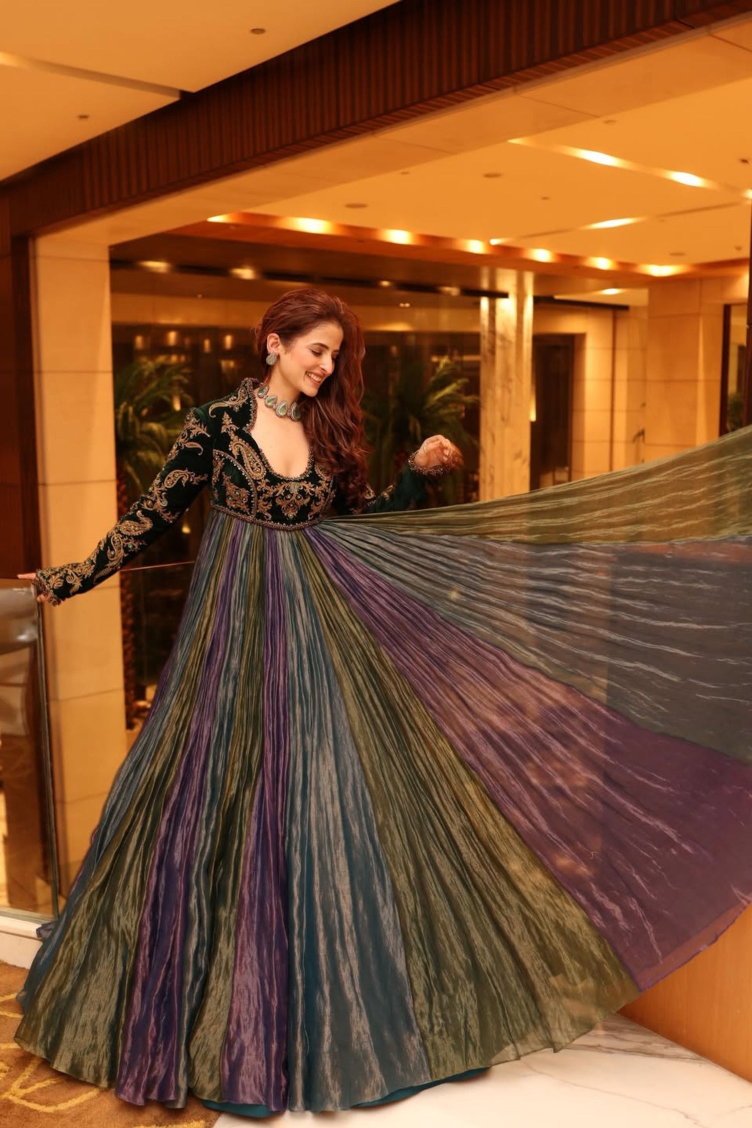 @rehmatrattanofficial looking stunning in a heritage tissue anarkali, brought to life with intri